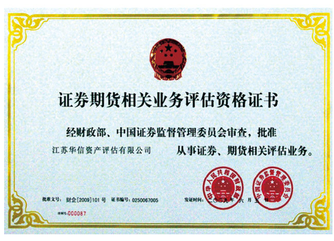 - 證券期貨相關業(yè)務評估資格證書