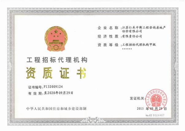 - 招標代理甲級資格證書