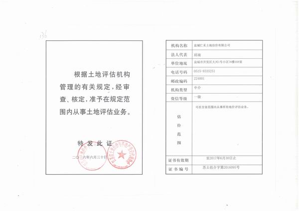 - 土地評估資質證書